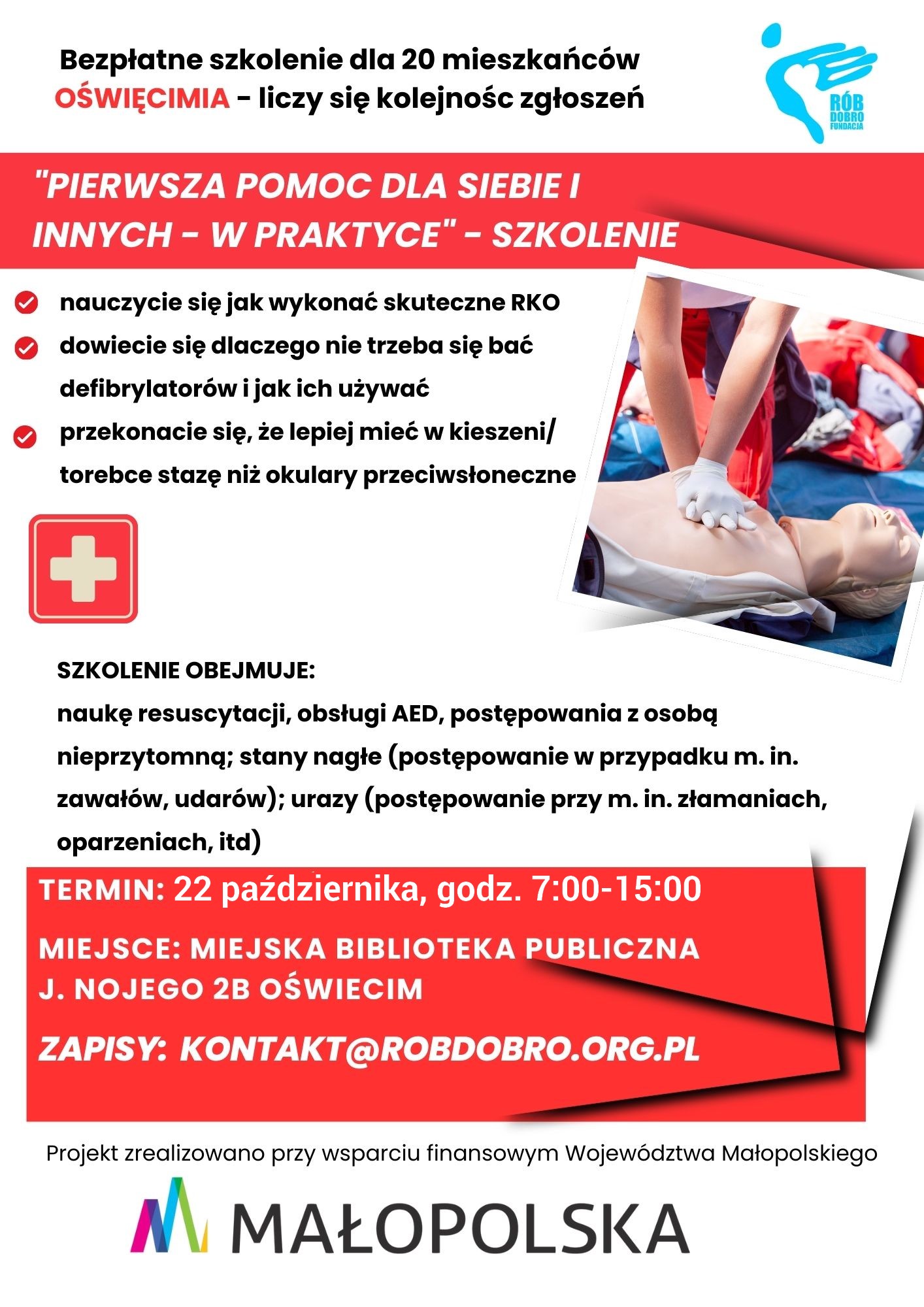 Fundacja Rób Dobro zaprasza Mieszkańców Oświęcimia i okolic do zapisów na praktyczne szkolenie z pierwszej pomocy!